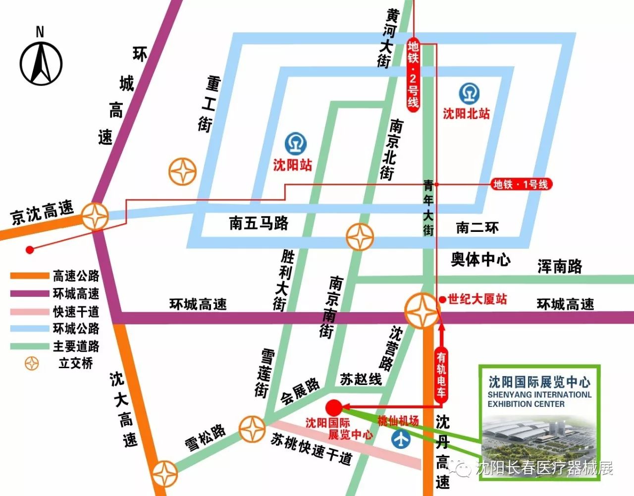 一一京沈高速公路→沈陽西環(huán)繞城高速→沈大高速公路蘇家屯收費站→雪松路→會展路→沈陽國際展覽中心。 ◆沈大高速公路 一一沈海(原沈大)高速公路→蘇家屯收費站→雪松路→會展路→沈陽國際展覽中心。 ◆沈哈高速公路 一一沈哈高速公路→沈陽東環(huán)繞城高速公路→沈丹高速公路→沈陽收費站→渾河大街→渾南西路→南京南街→沈陽國際展覽中心。 ◆沈撫高速公路 一一沈撫高速公路→沈撫大道→渾南東路→渾南中路→渾南西路→南京南街→沈陽國際展覽中心。 ◆沈丹、沈本高速公路 一一沈丹、沈本高速公路→出沈陽收費站→渾河大街→渾南西路→南京南街→沈陽國際展覽中心 【出租車路線(僅供參考)】