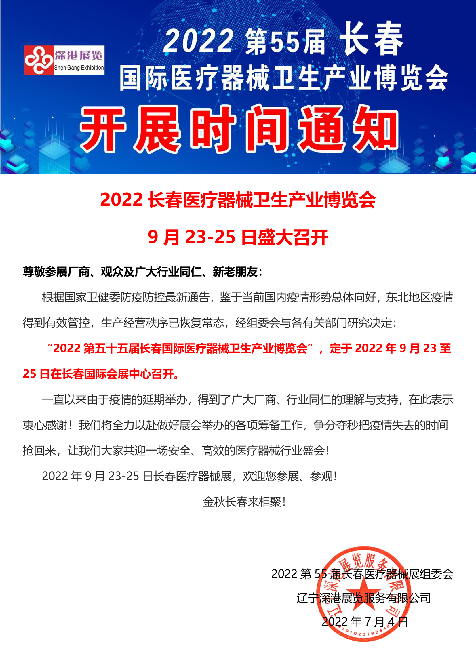 | 2022第55屆長春國際醫(yī)療衛(wèi)生產業(yè)博覽會9月23-25日盛大召開 | |