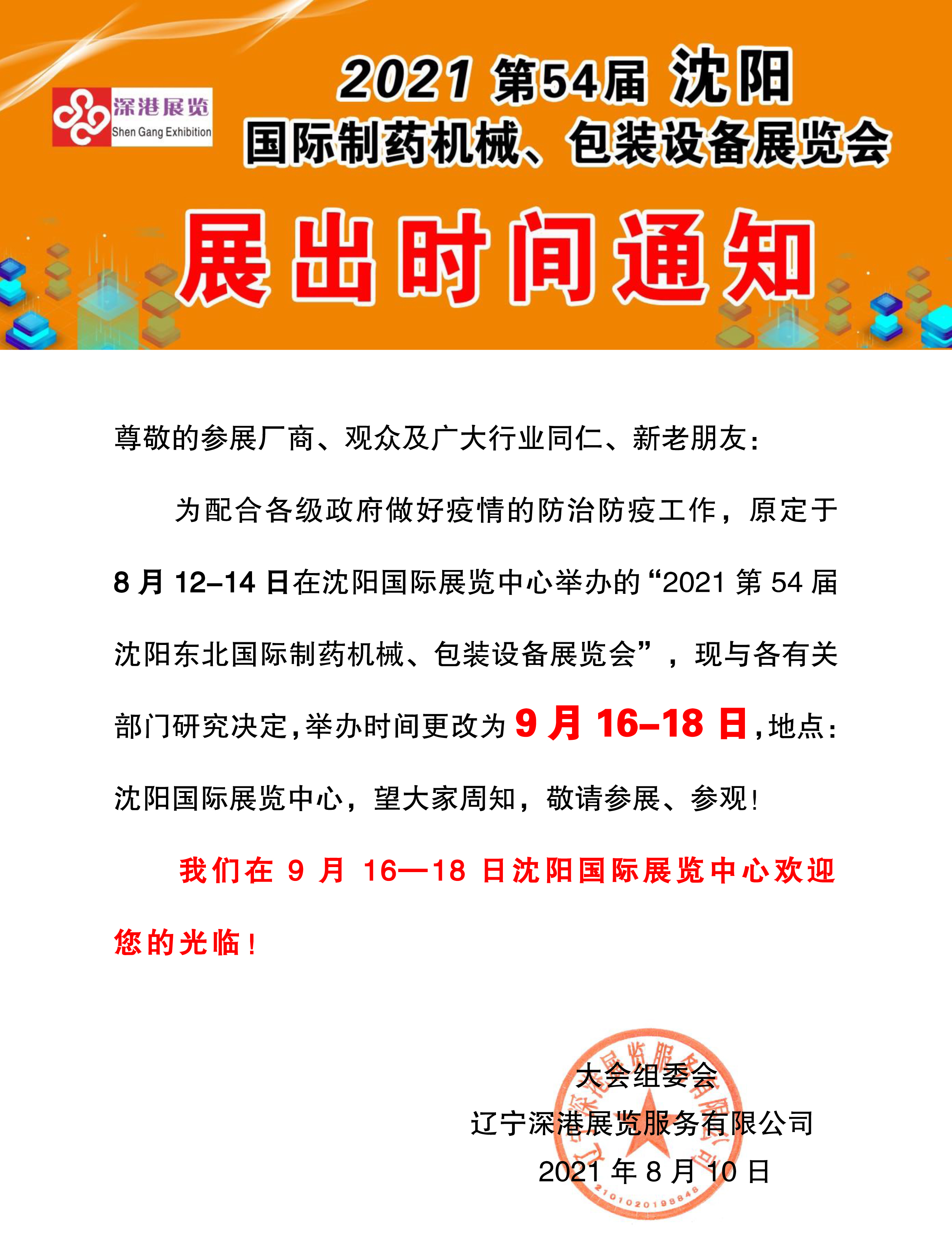 | 2021沈陽制藥機(jī)械展更改為9月16-18日在沈陽國(guó)際展覽中心舉辦?。?! | |