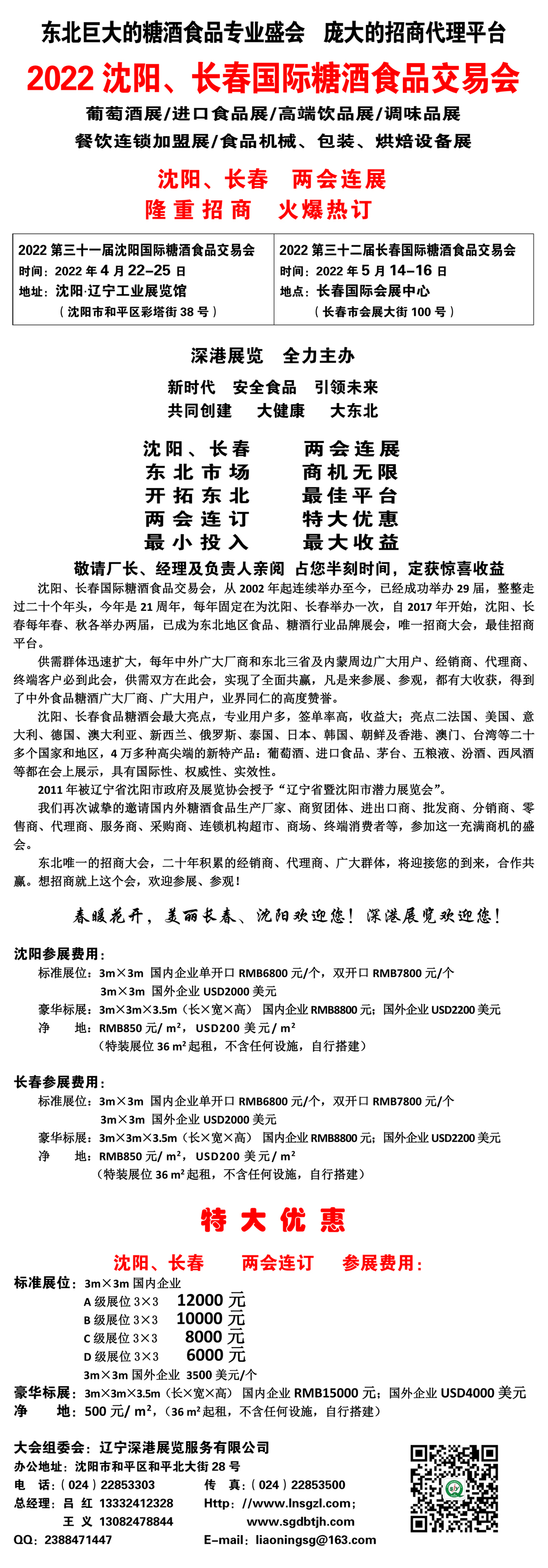 兩會連展|2022陽、長春國際糖酒食品交易會 特大優(yōu)惠