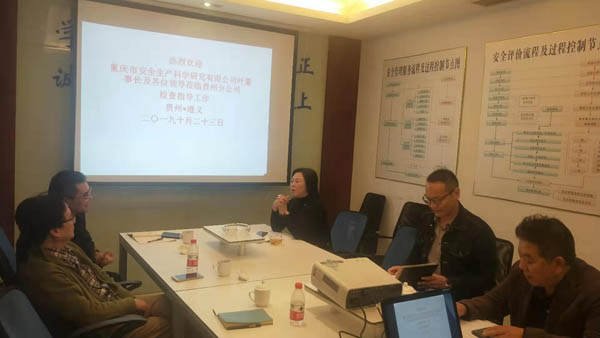 2019年10月23日,公司董事長葉如義、總工程師劉國勇及總工辦副主任馮皓一行 到貴州分公司進(jìn)行工作調(diào)研。分公司總經(jīng)理甘明霞對分公司2019年項目開展情況做了匯報,對工作中出現(xiàn)的技術(shù)力量單一、項目進(jìn)度慢等問題了反映 ;葉董事長對分公司2019年的工作做了充分的肯定,針對分公司現(xiàn)階段存在的問題,葉董、劉總有針對性的提出了解決辦法。下午,總工辦副主任馮皓對分公司技術(shù)人員就危險化學(xué)品、非煤礦山行業(yè)風(fēng)險分析及公司過程控制要求等內(nèi)容進(jìn)行了培訓(xùn)與交流 。
