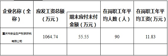 重慶市安全生產(chǎn)科學研究有限公司 2019 年度工資總額信息披露如下:
