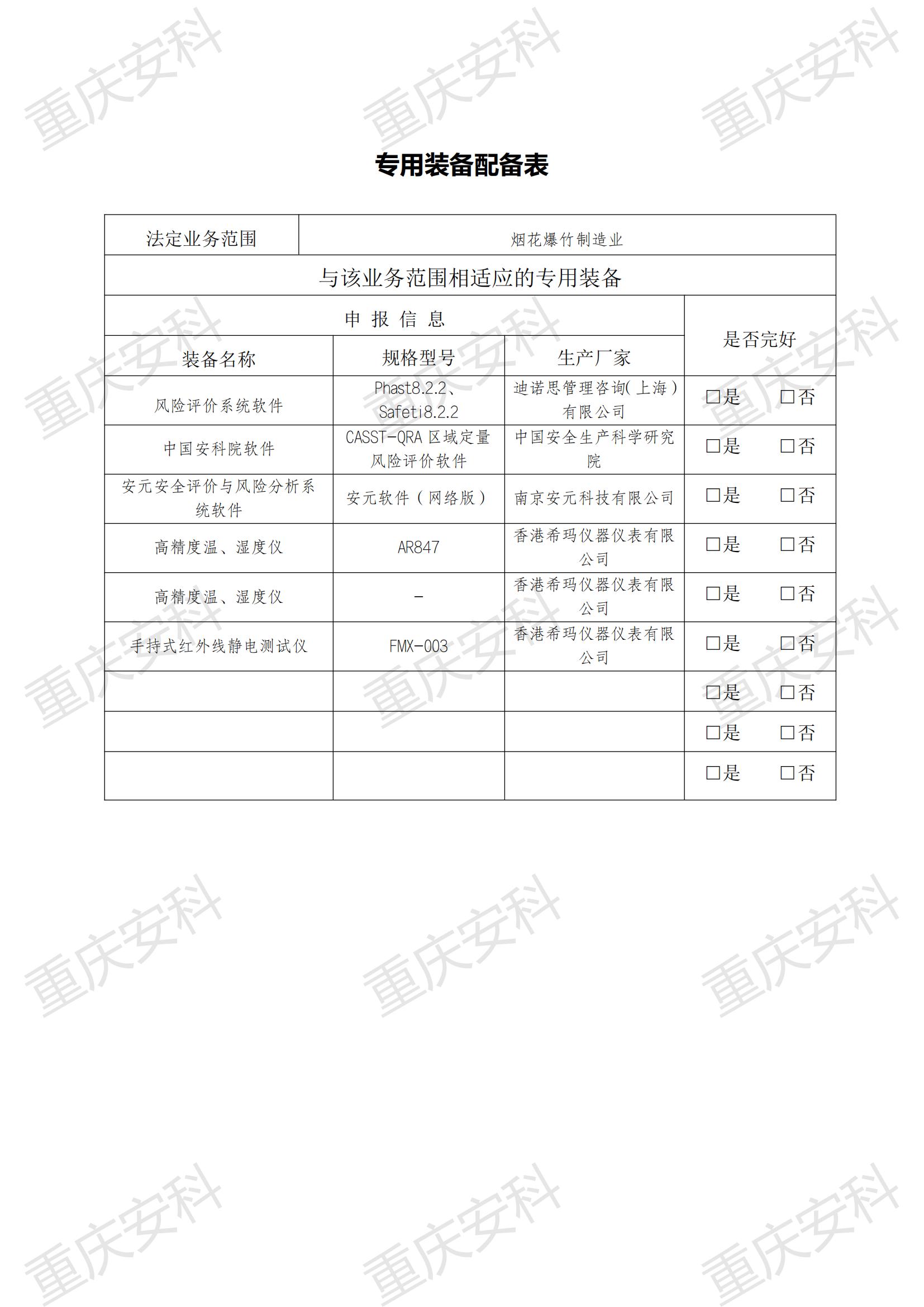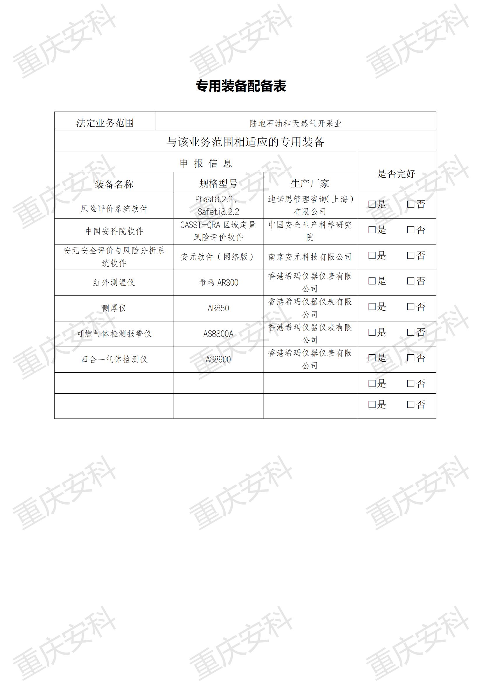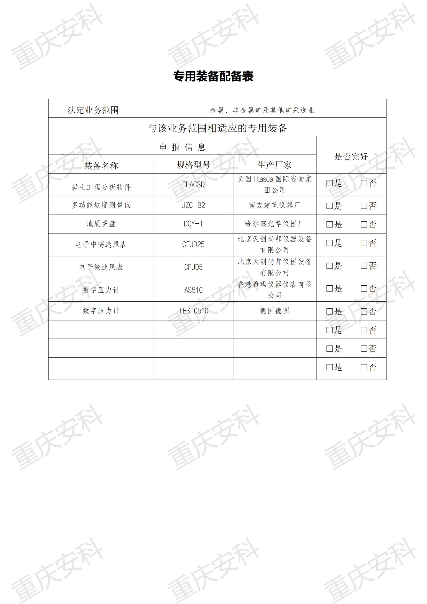 法定評價業(yè)務(wù)范圍安全評價師配備核查記錄