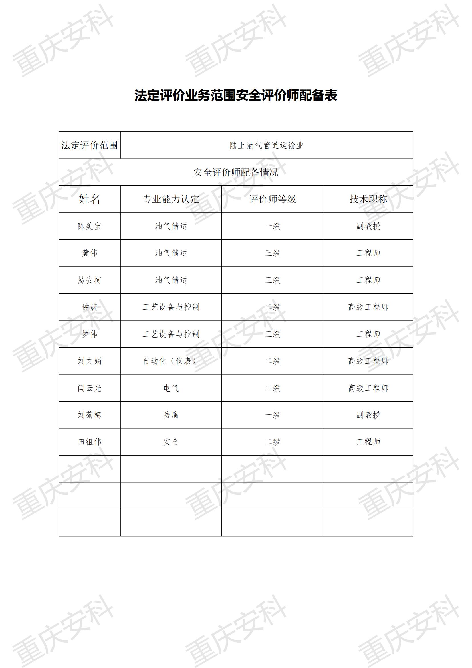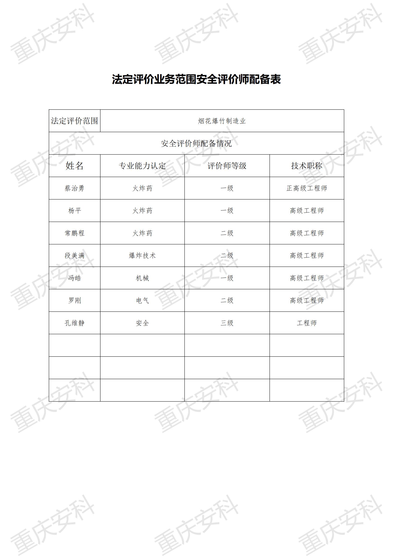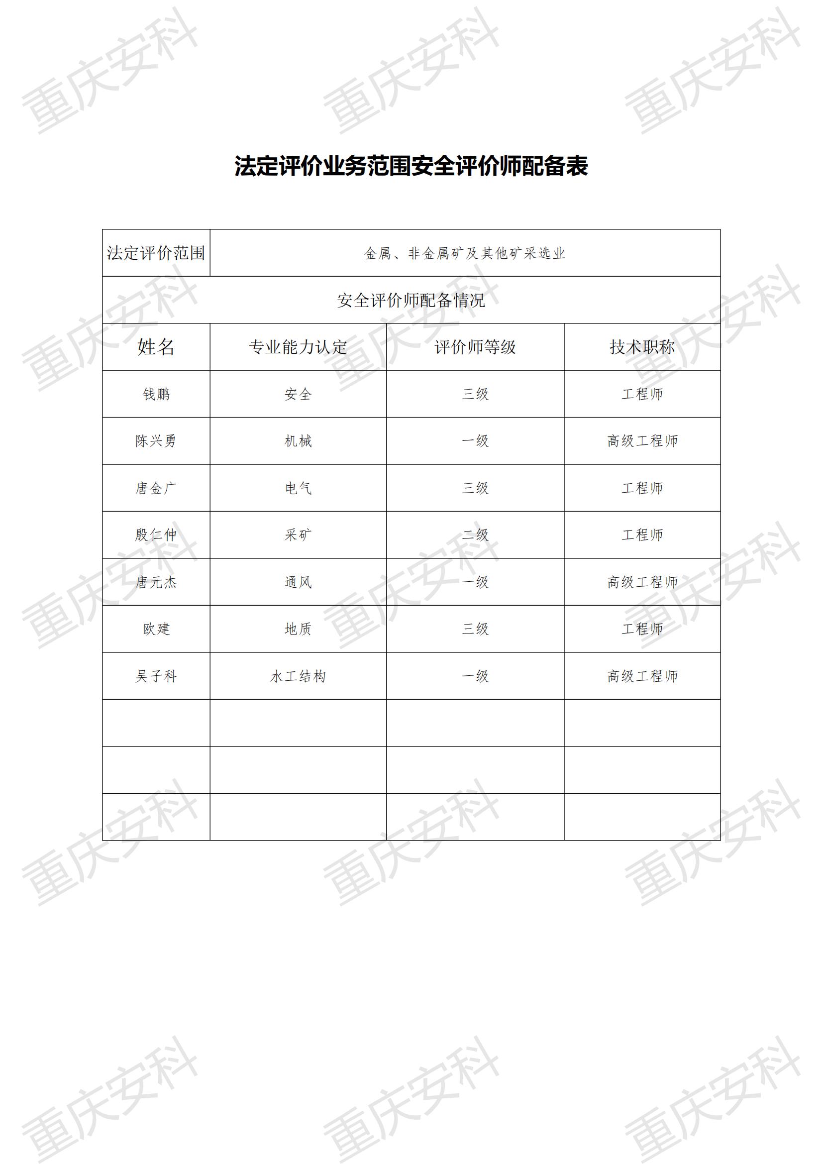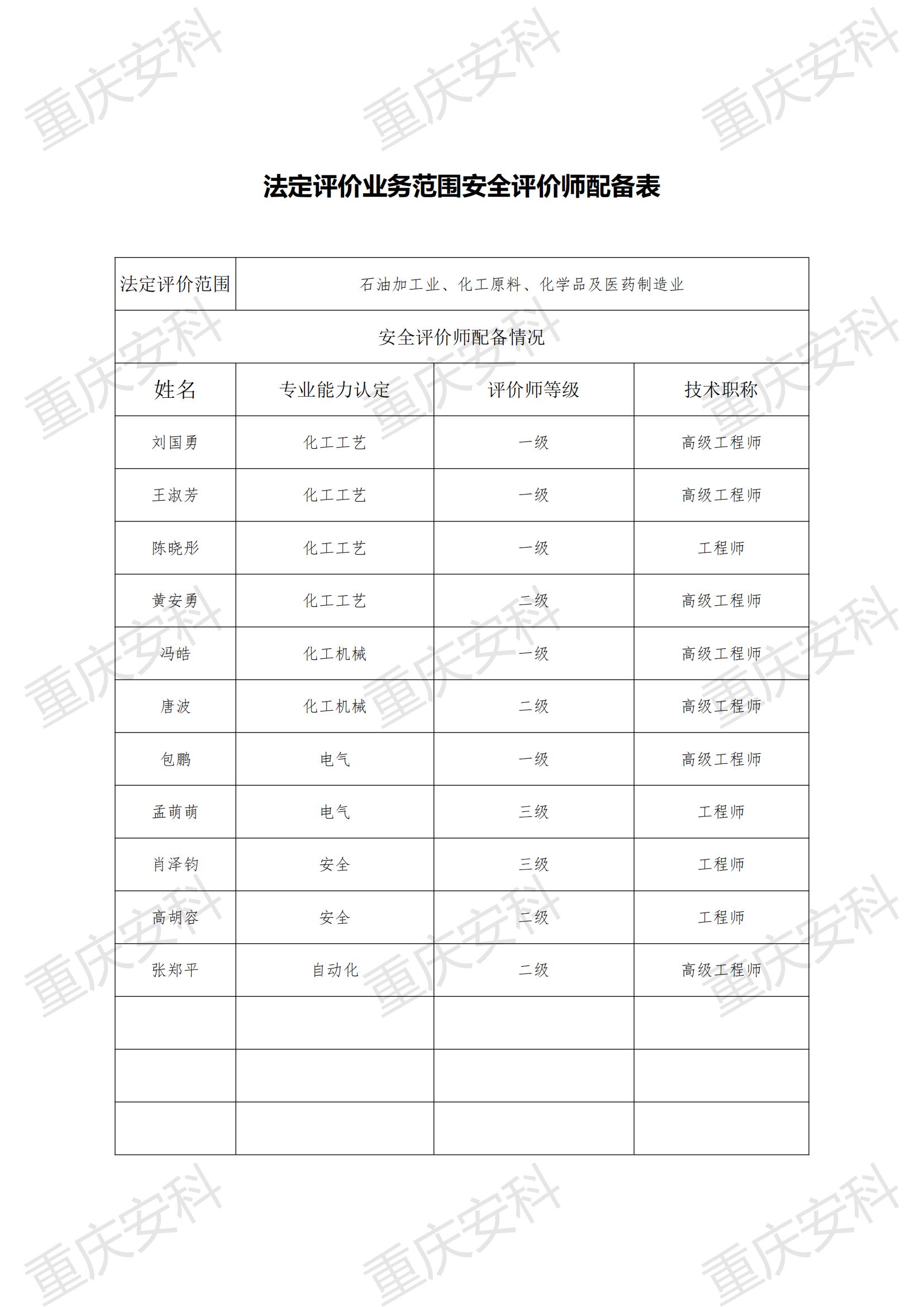 法定評(píng)價(jià)業(yè)務(wù)范圍安全評(píng)價(jià)師配備核查記錄