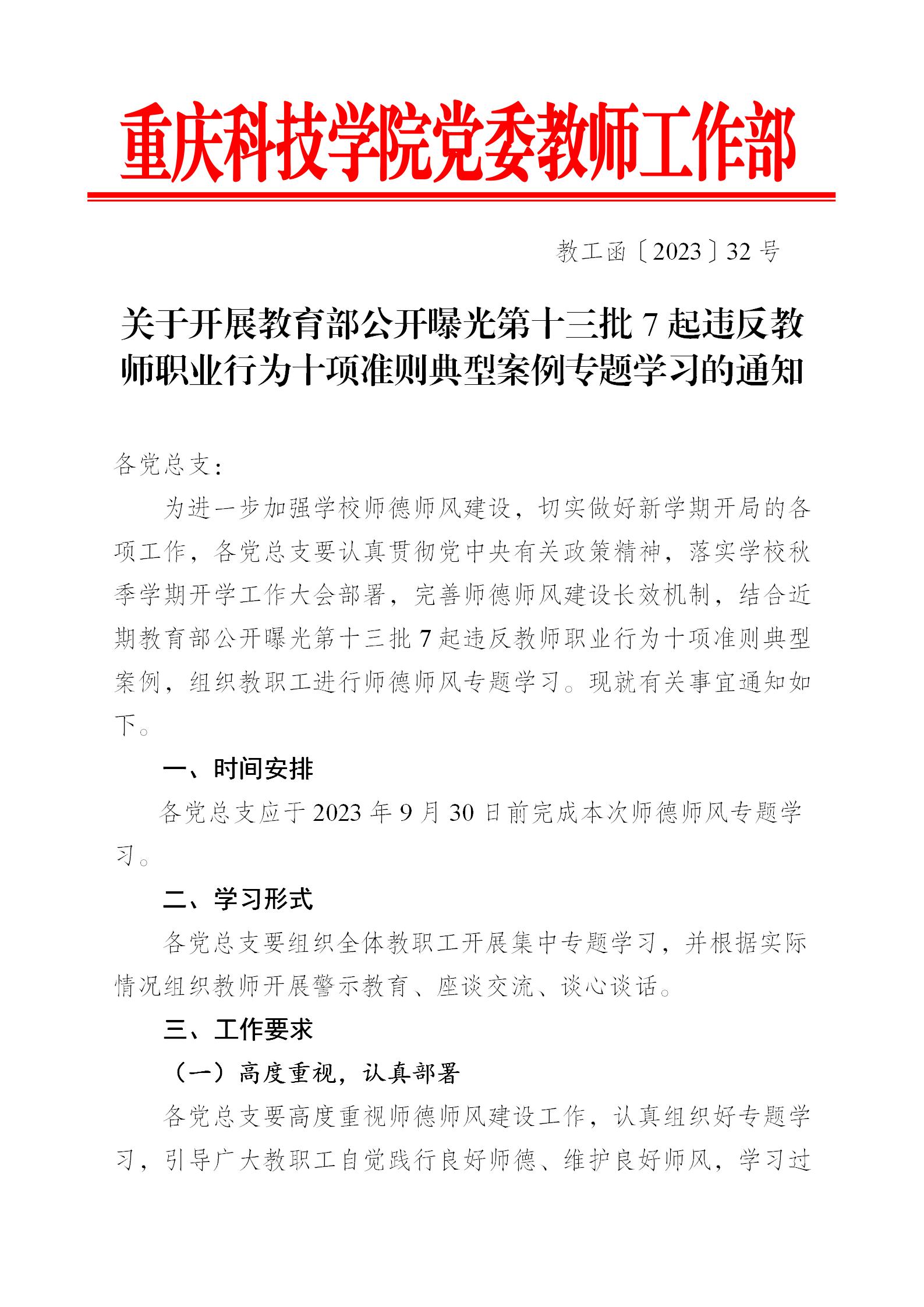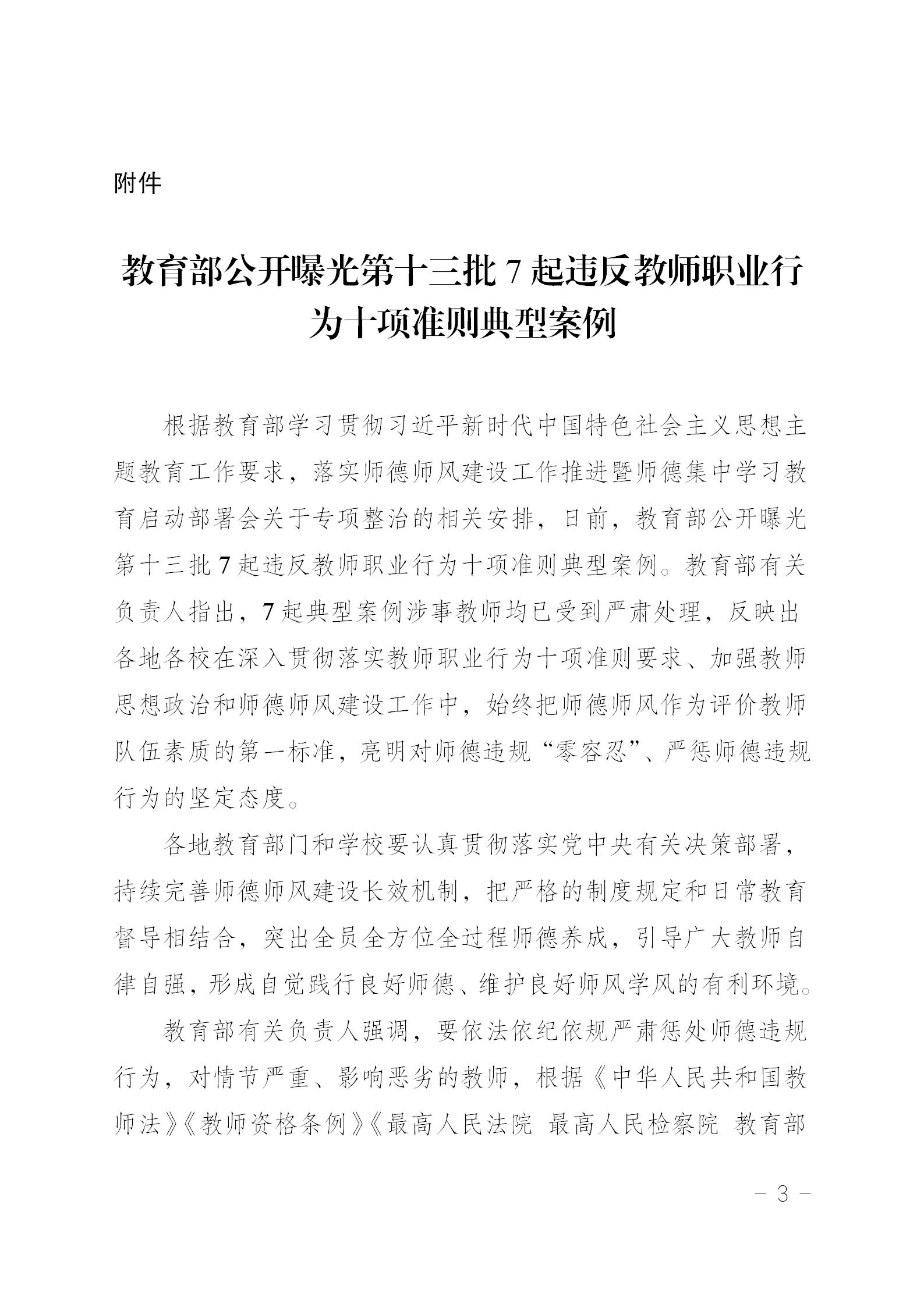 關(guān)于開展教育部公開曝光第十三批7起違反教師職業(yè)行為十項準則典型案例專題學習的通知