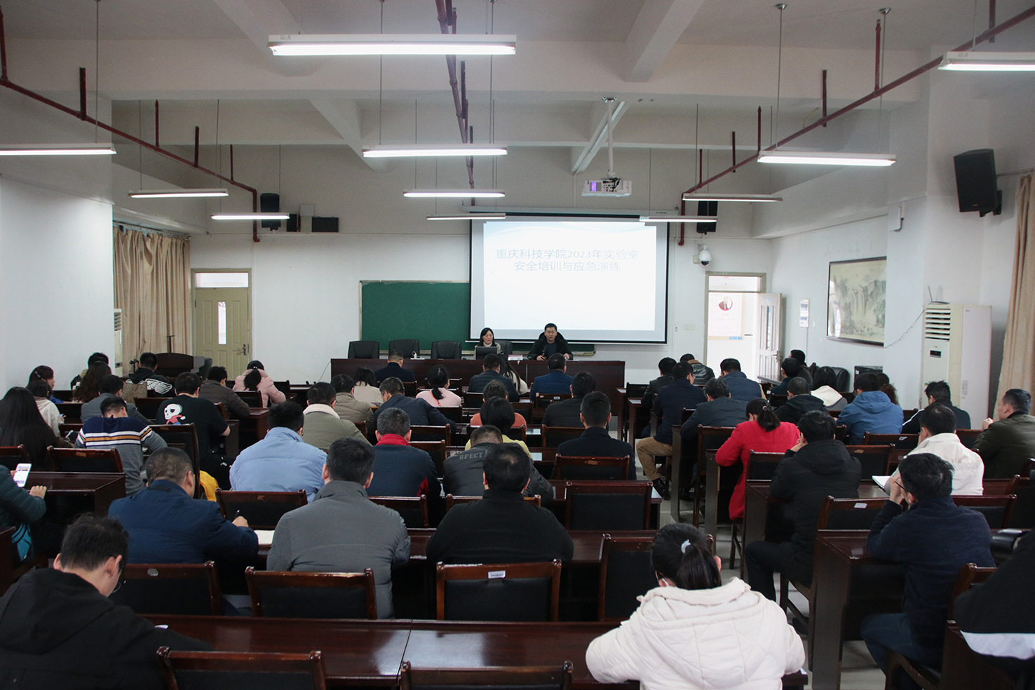 為增強(qiáng)全校師生的實(shí)驗(yàn)室安全意識(shí),提升實(shí)驗(yàn)室安全管理水平及突發(fā)事故的應(yīng)急處置能力,學(xué)校于12月13日下午在篤行樓開(kāi)展實(shí)驗(yàn)室安全培訓(xùn)及應(yīng)急演練活動(dòng)。本次活動(dòng)由教務(wù)處主辦,化學(xué)化工學(xué)院承辦,保衛(wèi)處協(xié)辦。資產(chǎn)與后勤管理處、校醫(yī)院等相關(guān)部門負(fù)責(zé)人和各學(xué)院分管實(shí)驗(yàn)室安全責(zé)任人、實(shí)驗(yàn)中心負(fù)責(zé)人、安全員、實(shí)驗(yàn)室相關(guān)的教師代表,以及學(xué)生代表、消防志愿者等近200人參加了本次培訓(xùn)及演練、觀摩活動(dòng)。