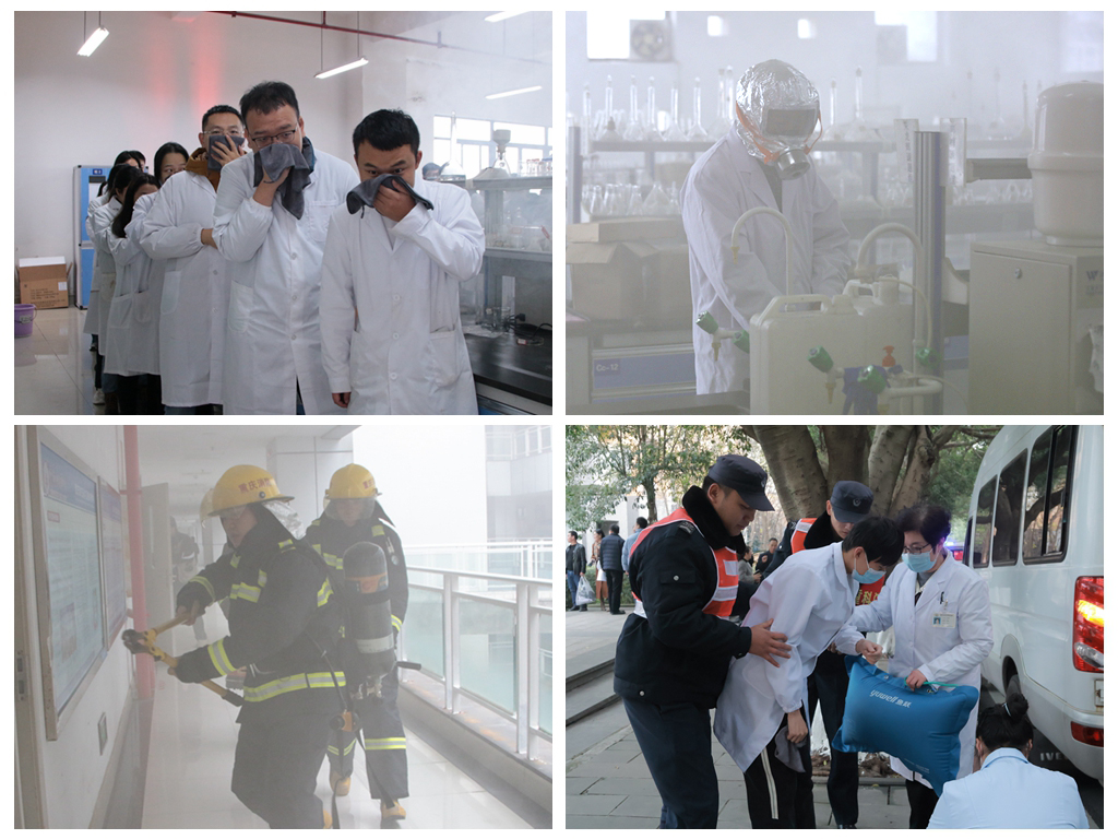 在應(yīng)急演練環(huán)節(jié),演練的場(chǎng)景設(shè)定為“K1008實(shí)驗(yàn)室發(fā)生;沸孤,一名同學(xué)受傷”,實(shí)驗(yàn)老師收到同學(xué)報(bào)告后,立即撥打電話向?qū)W院班子成員報(bào)告,學(xué)院立即啟動(dòng)應(yīng)急預(yù)案,向保衛(wèi)處和校醫(yī)院請(qǐng)求支援,并向分管領(lǐng)導(dǎo)報(bào)告事故情況。同時(shí),實(shí)驗(yàn)室老師立即組織學(xué)生有序疏散、到達(dá)安全地點(diǎn)后清點(diǎn)人數(shù),義務(wù)消防員和應(yīng)急處置人員佩戴好防護(hù)用具進(jìn)入實(shí)驗(yàn)室進(jìn)行應(yīng)急處置,保衛(wèi)處人員到達(dá)現(xiàn)場(chǎng)后,立即封鎖事故現(xiàn)場(chǎng)并組織消防救援,校醫(yī)院接到報(bào)告后立即出動(dòng)救護(hù)人員對(duì)受傷學(xué)生進(jìn)行醫(yī)療救護(hù)。演練結(jié)束后,重慶市安全生產(chǎn)科學(xué)研究有限公司安全消防評(píng)價(jià)所副所長(zhǎng)、一級(jí)安全評(píng)價(jià)師王梅對(duì)本次演練的方案、目的和達(dá)成的預(yù)期效果進(jìn)行了點(diǎn)評(píng)。