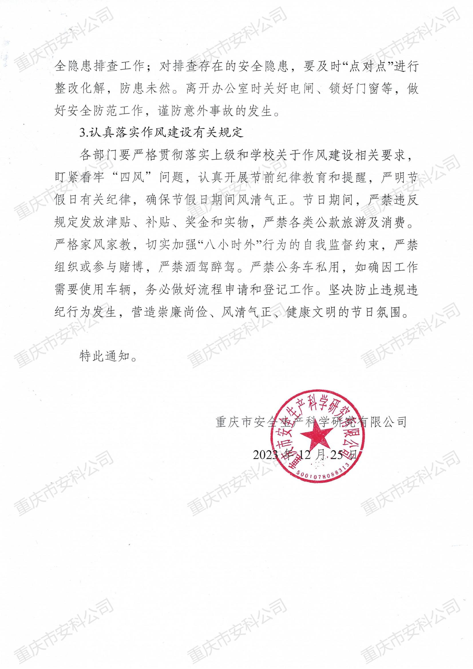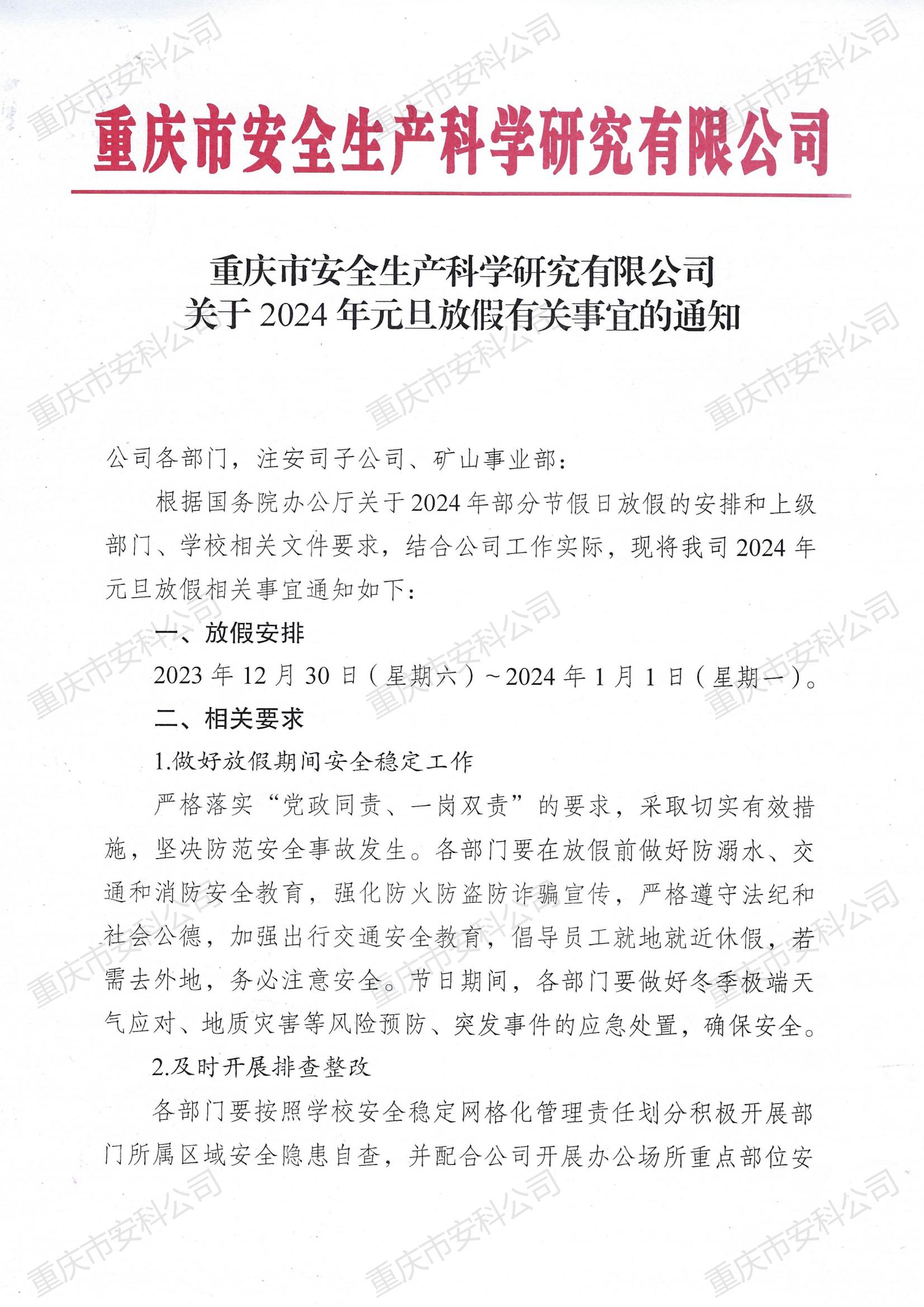 公司關(guān)于2024年元旦放假有關(guān)事宜的通知