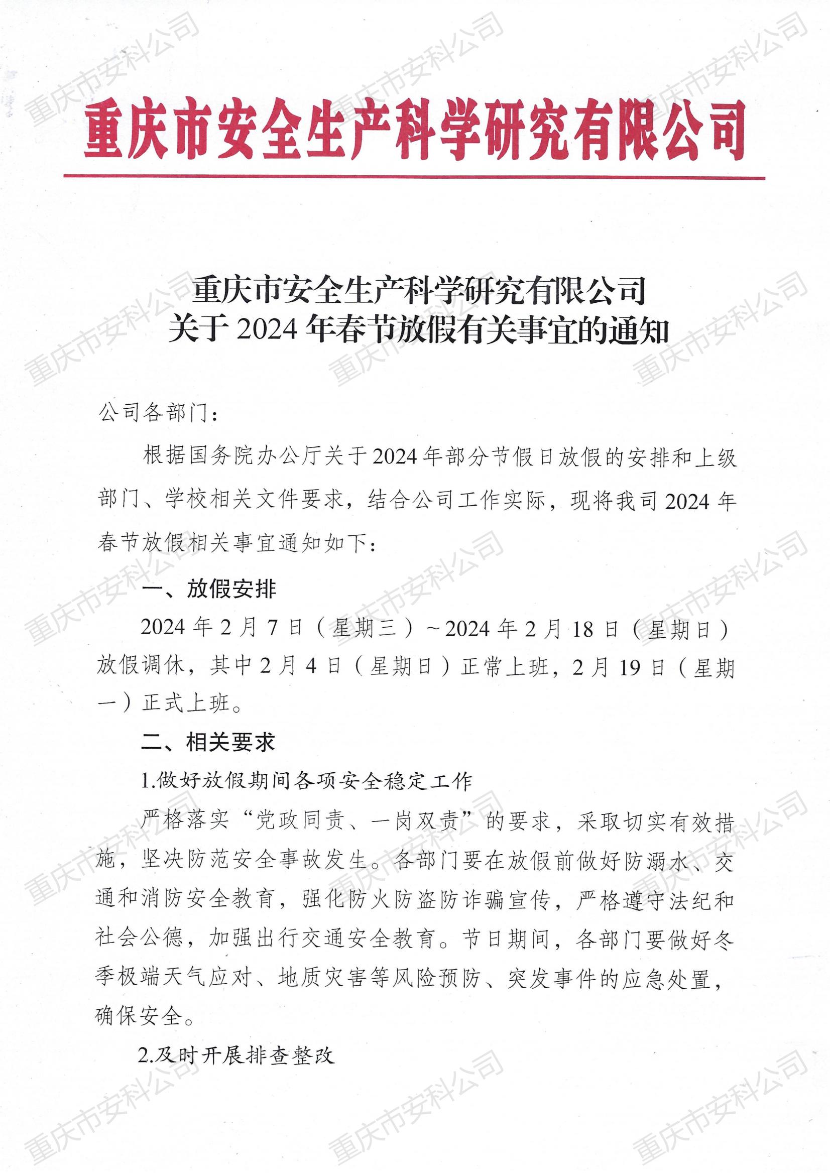 公司關(guān)于2024年春節(jié)放假有關(guān)事宜的通知