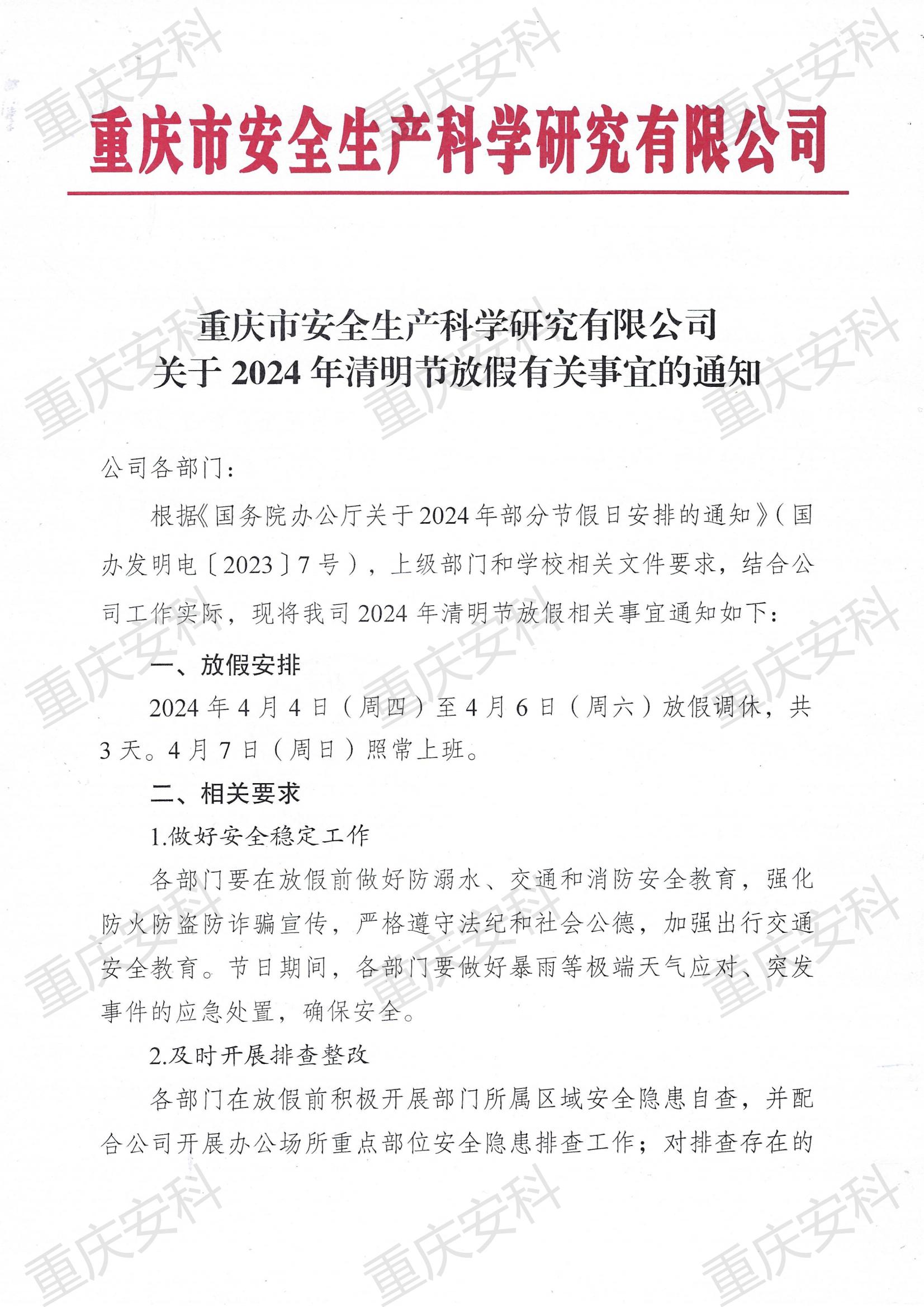 公司關(guān)于2024年清明節(jié)放假有關(guān)事宜的通知