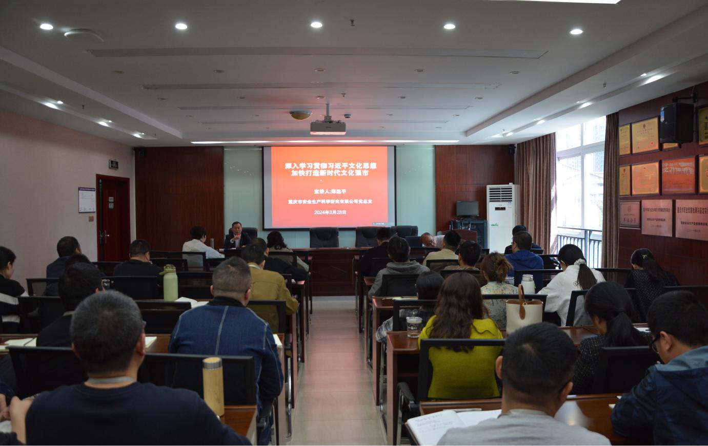 近日,重慶市安全生產(chǎn)科學(xué)研究有限公司黨總支通過(guò)線下現(xiàn)場(chǎng)會(huì)議與線上視頻會(huì)議相結(jié)合的方式,開展了“深入學(xué)習(xí)貫徹習(xí)近平文化思想,加快打造新時(shí)代文化強(qiáng)市”專題宣講。全體職工參加會(huì)議,黨總支書記鄭遠(yuǎn)平作專題宣講。