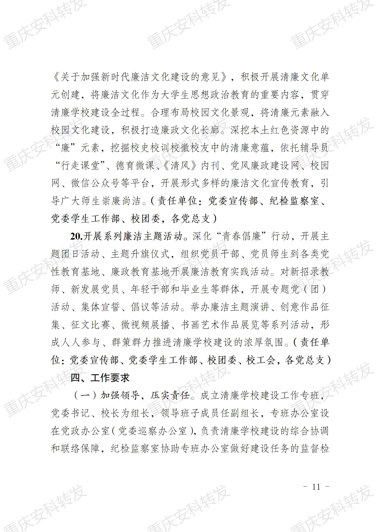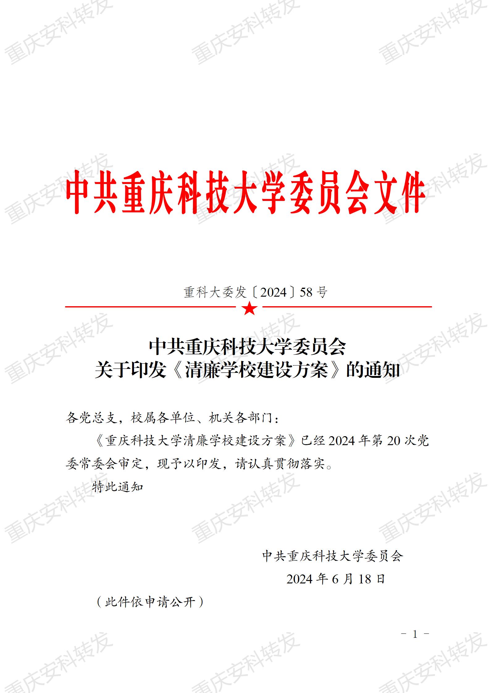 安科公司轉(zhuǎn)發(fā)中共重慶科技大學(xué)委員會關(guān)于印發(fā)《清廉學(xué)校建設(shè)方案》的通知