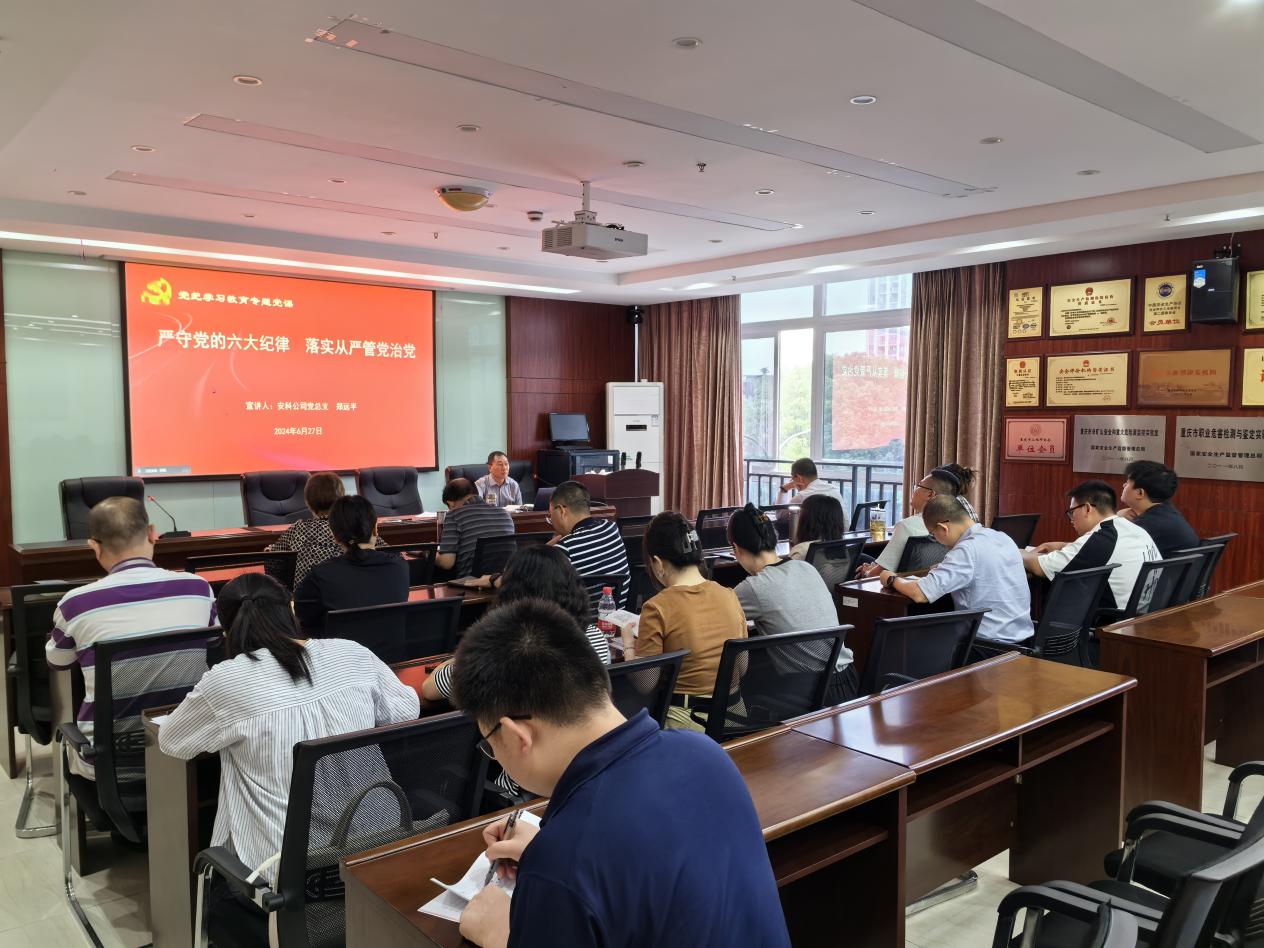 2024年6月27日上午,安科公司黨總支組織全體黨員,通過線上線下同上一堂黨課方式,在318會議室開展了黨紀(jì)學(xué)習(xí)教育專題黨課學(xué)習(xí)。本次專題黨課學(xué)習(xí)由黨總支書鄭遠平同志作主題宣講。