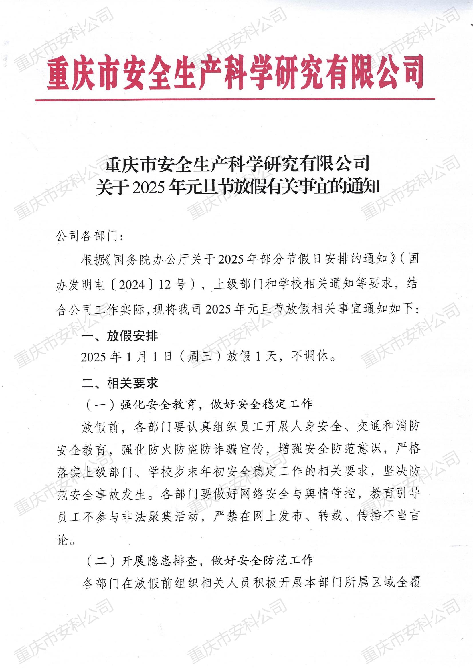 公司關(guān)于2025年元旦節(jié)放假有關(guān)事宜的通知