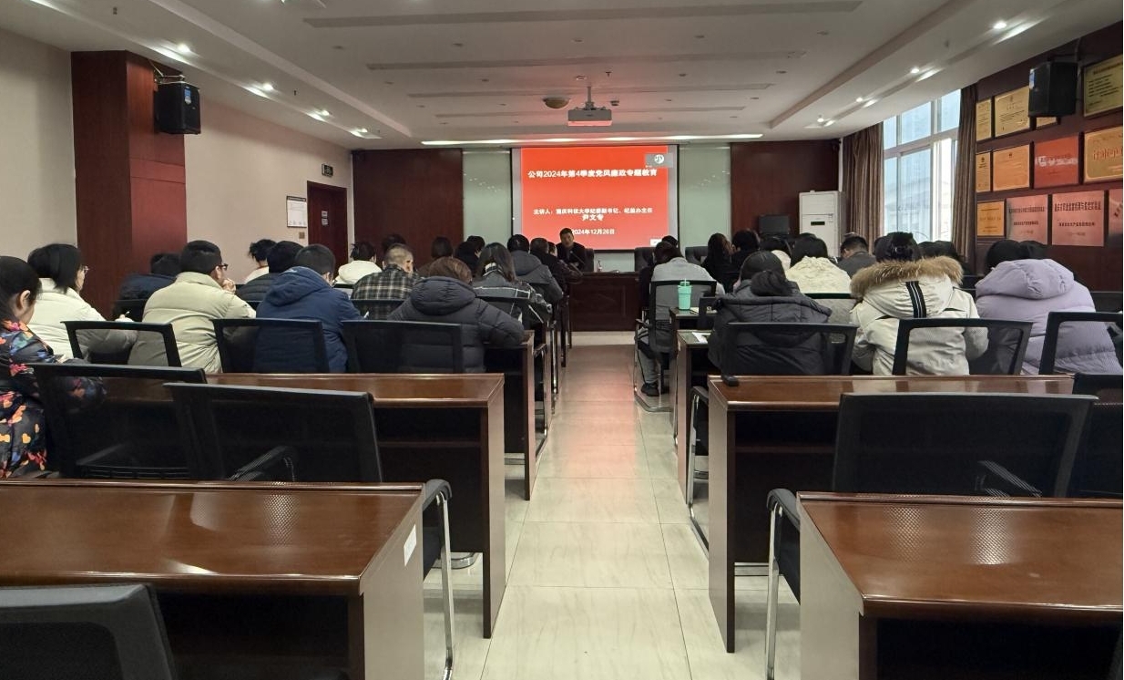 12月26日下午,學(xué)校紀(jì)委副書記、紀(jì)檢辦主任尹文專在公司318會(huì)議室,面向公司職工開展2024年第4季度黨風(fēng)廉政專題教育。公司全體教職工通過線下和線上方式參加會(huì)議。