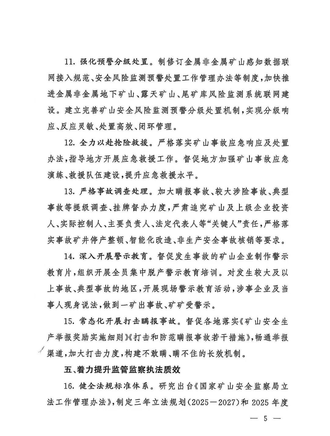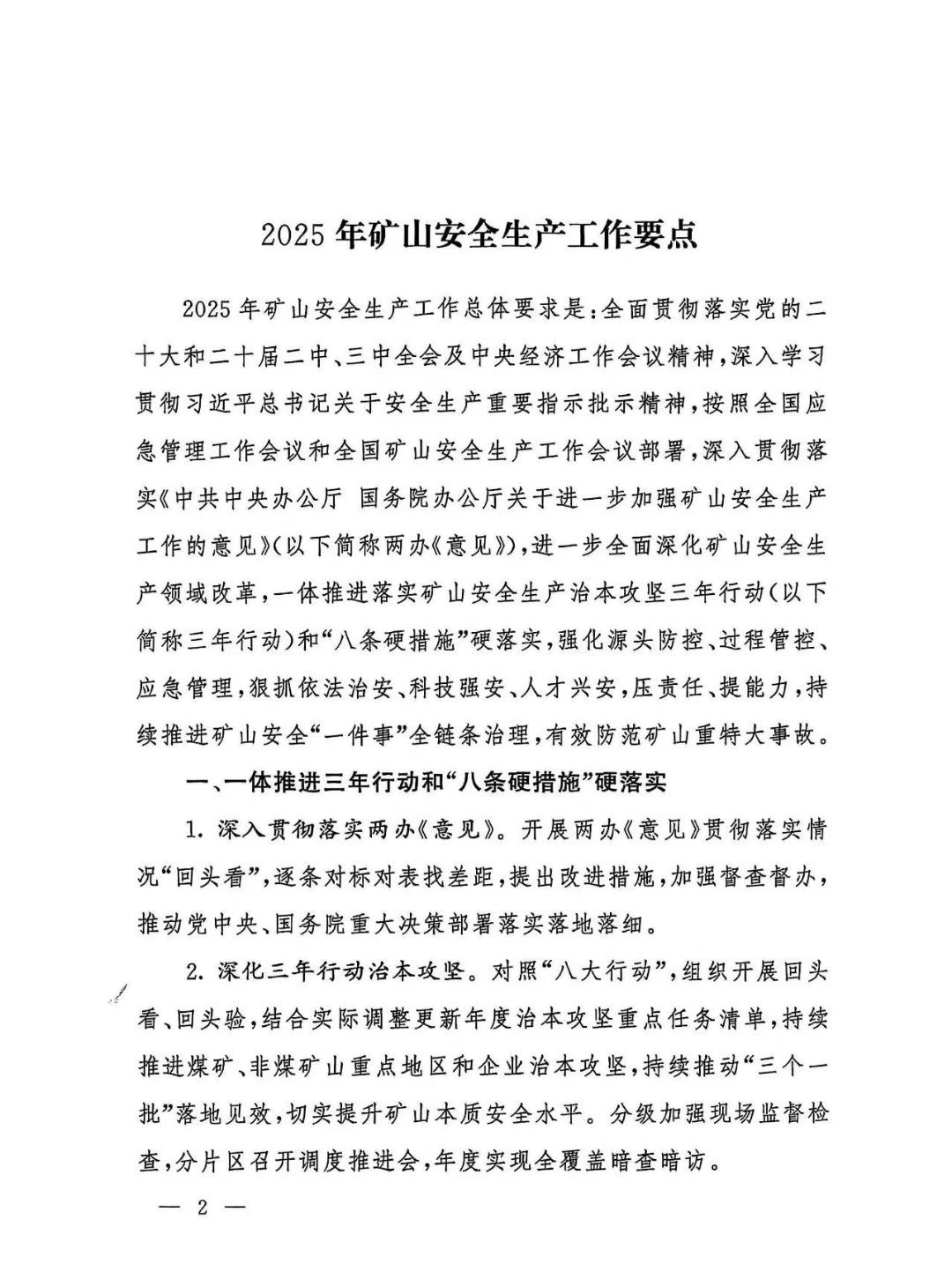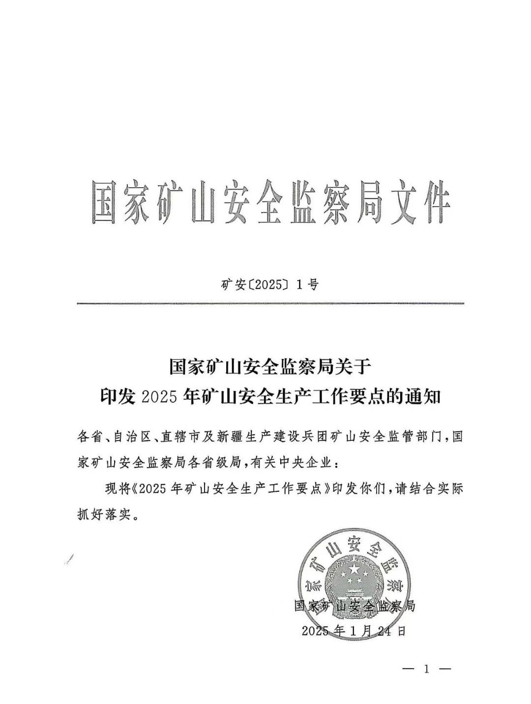 國(guó)家礦山安全監(jiān)察局關(guān)于印發(fā)2025年礦山安全生產(chǎn)工作要點(diǎn)的通知