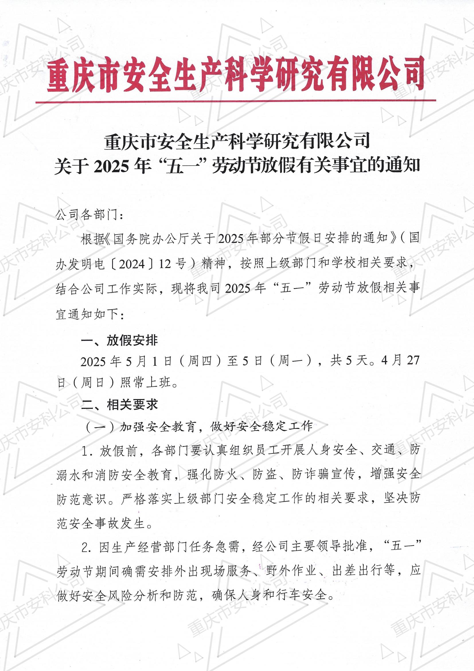 公司關(guān)于2025年“五一”勞動(dòng)節(jié)放假有關(guān)事宜的通知
