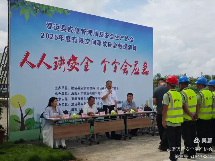 為切實(shí)提升有限空間作業(yè)安全應(yīng)急處置能力,檢驗(yàn)應(yīng)急預(yù)案的科學(xué)性與可操作性,2025 年 7 月 4 日,澄邁縣應(yīng)急管理局及安全生產(chǎn)協(xié)會(huì)聯(lián)合主辦、海南禾豐牧業(yè)有限公司承辦的有限空間事故應(yīng)急救援演練順利開展。重慶市安全生產(chǎn)科學(xué)研究有限公司作為副會(huì)長(zhǎng)單位及技術(shù)支撐單位,全程深度參與,為演練的成功舉辦提供了堅(jiān)實(shí)保障。