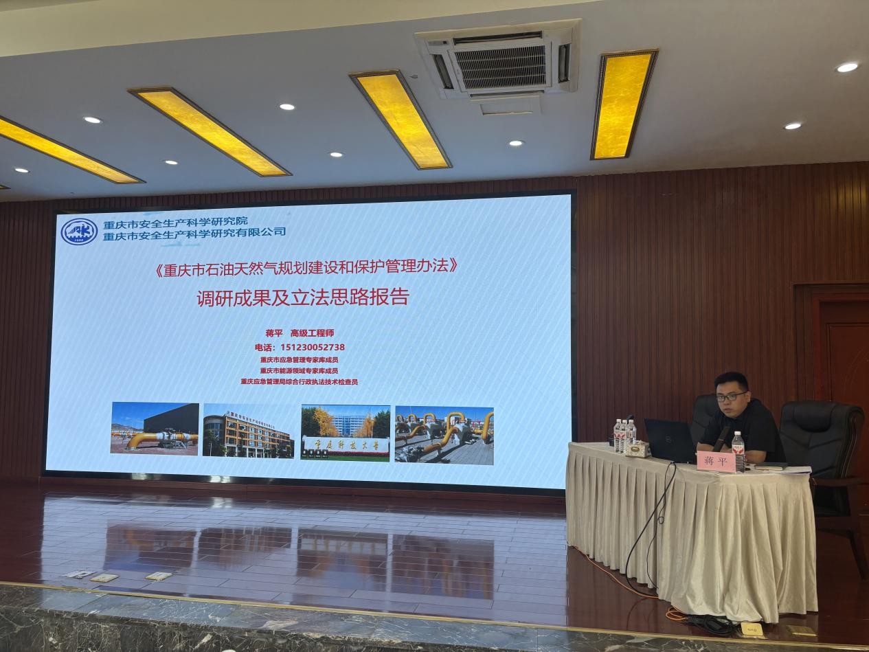 重慶市應急管理專家、公司應急管理與技術研究所所長蔣平代表管道立法專班對《重慶市石油天然氣規(guī)劃建設保護管理辦法》前期調研成果及立法思路進行了闡述和說明,并結合前期市內管道企業(yè)調研、區(qū)縣主管部門座談、市級相關部門溝通,以及浙江省、山東省等地工作調研情況,對前期立法思路和立法宗旨進行說明,并就下一步工作計劃和思路進行了匯報交流。