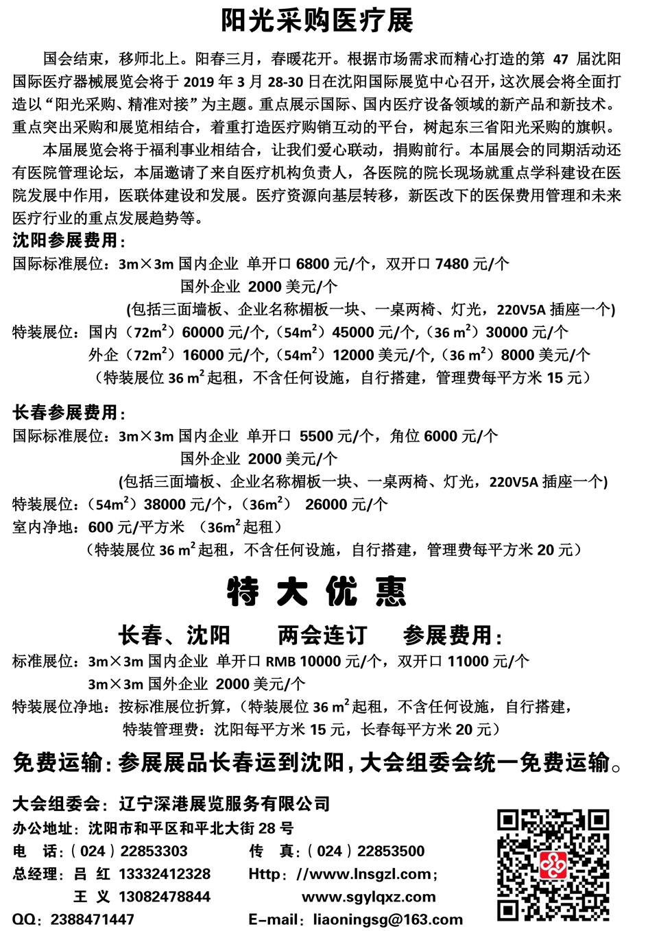 | 2019沈陽、長春醫(yī)療器械設(shè)備展覽會 兩會連展 特大優(yōu)惠! | |