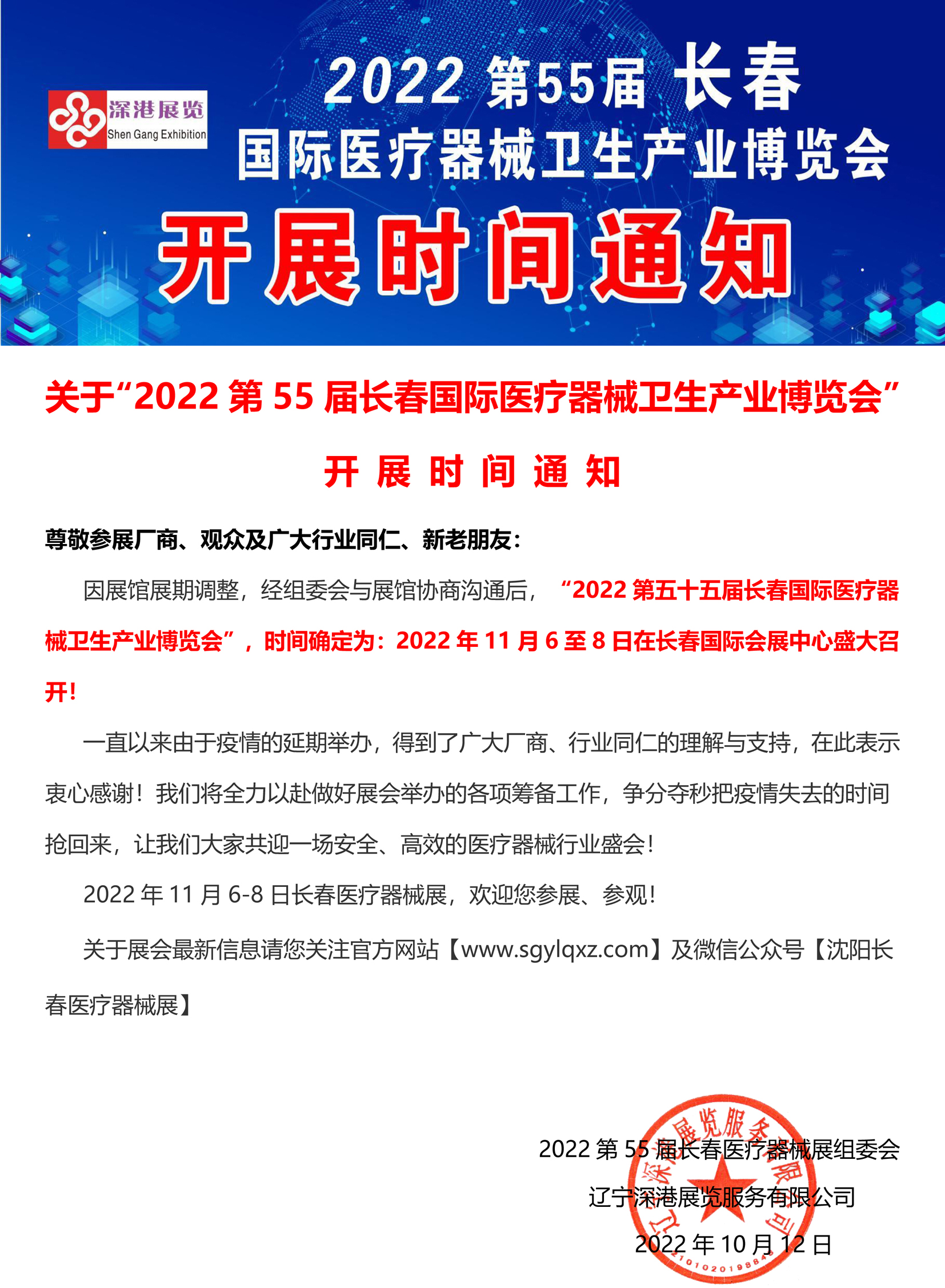 關(guān)于“2022第55屆長(zhǎng)春國(guó)際醫(yī)療器械衛(wèi)生產(chǎn)業(yè)博覽會(huì)”開展時(shí)間通知